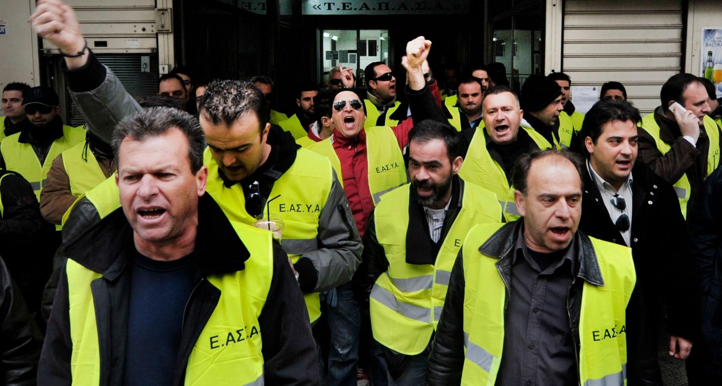 Греческая полиция протестует против участия пенсионных фондов в сделке по обмену долга между греческим государством и частными держателями облигаций, 2012 г. Фото: Getty Image