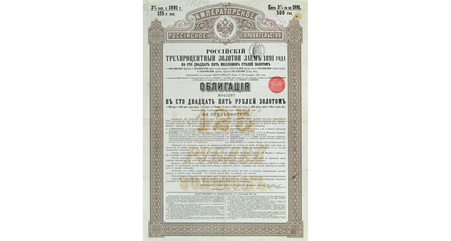 Государственная трехпроцентная золотая облигация Российской империи. Срок погашения — 30 лет. После революции большевики отказались выплачивать царский долг. Фото: DR