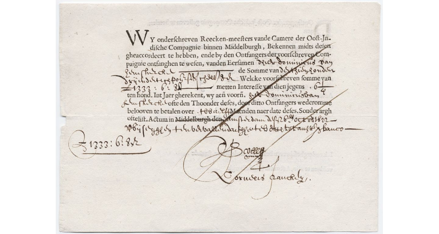 Облигация Голландской Ост-Индской компании (VOC). Фото: Beinecke Rare Book and Manuscript Library