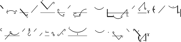 Часто употребимые слова имеют собственные знаки. А буквы в большинстве случаев совсем непохожи на стандартную латиницу/кириллицу.