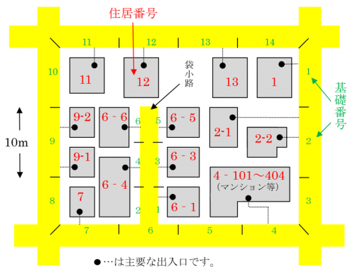 Честно скажу, я не до конца понял, что там с этими безымянными проулочками происходит. В примерах написано так, будто бывает необходимо пройти от указанного перекрёстка пару кварталов. Однако эти проулочки расположены внутри квартала, а на границе квартала у улицы будет имя. По всему логичнее было бы говорить, в какой из проулков свернуть. Может так и есть, но из описаний системы на японском, я понять этого не смог. Относитесь к этой информации с осторожностью.